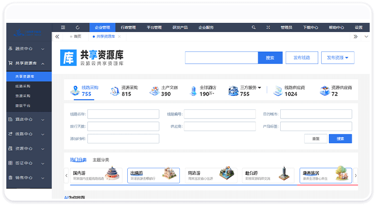 通过采购中心的系统资源库,地接社的产品会被更多的人看到,您上传产品同步到采购中心就可以让所有系统使用者看到自己的产品,采购中心会使客户互联互通,资源一经发布,资源信息直达,高效沟通。发布后,您的产品将出现在全国系统使用企业的采购中心中,供其采购。