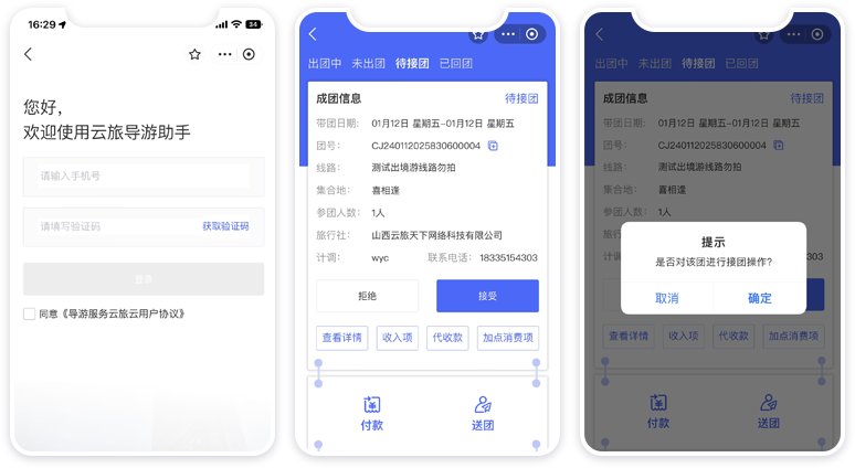 一键接团获取团队信息,提高接团效率。当导游需要接团时,只需在系统中输入团队的相关信息,例如团队名称、人数、行程安排等,系统就会自动将团队信息分配给相应的导游。这可以大大减少地接社的工作量,提高接团效率,同时也能确保团队信息的准确性和安全性。此外,地接社的内部导游也可以获取团队信息,以便更好地为游客提供服务。